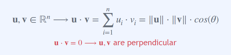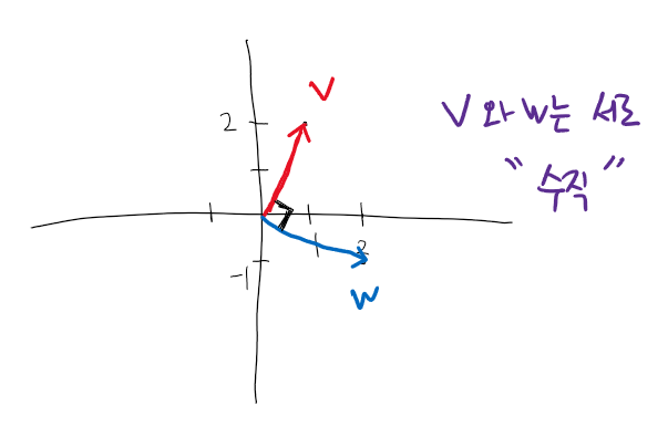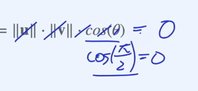 만약 점곱의 결과가 0이 된다면, 이때는 상당히 중요한 기하하적(geometrical) 의미를 갖습니다.