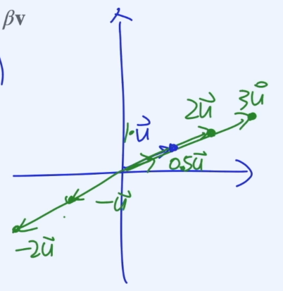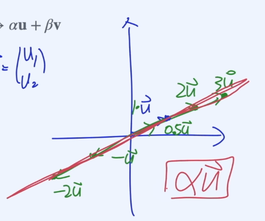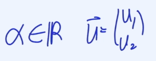 만약 알파가 임의의 실수, U가 2차원 벡터일 경우,