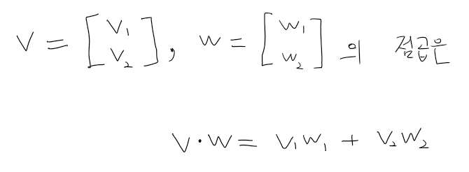 만약 v와 w가 다음과 같다면, 두 벡터의 점곱은 이렇게 계산됩니다.