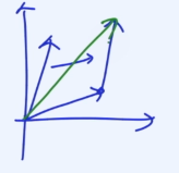 그런데 2개의 서로 방향이 다른 벡터를 선형결합한다면, 상황이 달라집니다.