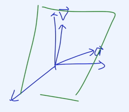 - 서로 방향이 다른 두 개의 3차원 벡터를 선형 결합하면, 3차원 공간에서 하나의 평면을 채울 수 있습니다.