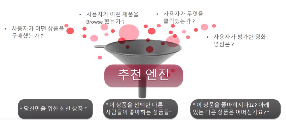 개인 맞춤형 서비스 제공 위해 구매패턴 등 과거 데이터를 분석하여 상품을 추천하는 시스템