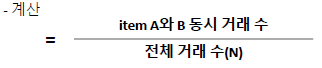 - 상품 A와 B가 얼마나 같이 구매되는가?
