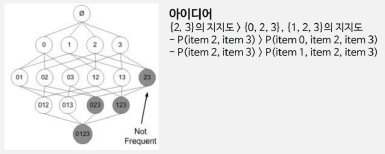 기본적인 아이디어는 “빈번한 아이템셋은 하위 아이템셋 또한 빈번할 것이다“