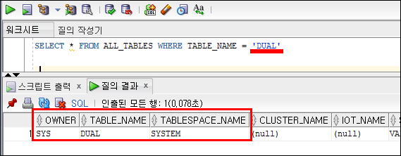 그 이유는 바로 이 테이블은 SYS 소유이기 때문입니다. SYSTEM에서 기본으로 만들어놓은 테이블이지만, 모든 사용자에게 권한을 주어서 내가 만든 테이블 처럼 조회가 가능합니다.
