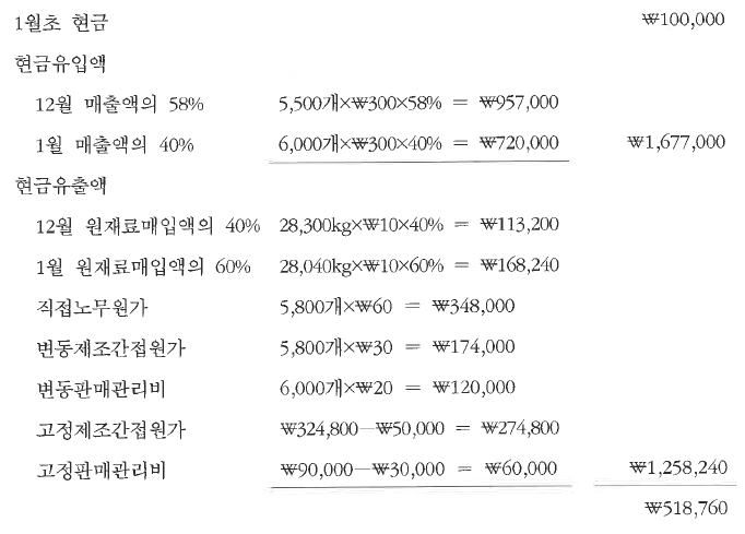 (3) ㈜한국공항의 1월 현금예산을 편성하시오.