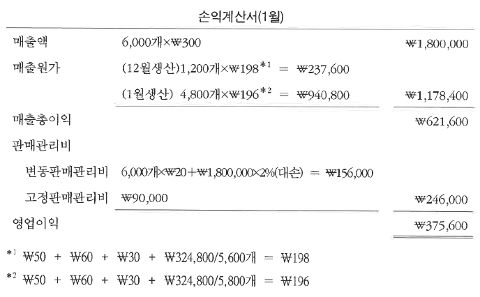 (4) ㈜한국공항은 원가흐음의 가정으로 선입선출법을 적용하며, ㈜ 한국공항의 단위당 변동원가와 고정원가 총액은 매월 동일하다. ㈜ 한국공항의 1월초 현금 잔액은 ₩100,000이다.