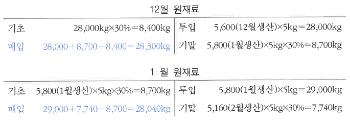 (2) ㈜한국공항의 12월과 1월의 원재료 구매량을 구하시오.