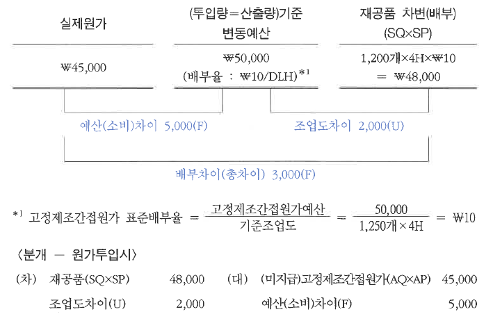 3) 변동예산과 재공품 계정 차변에 집계하는 회계처리 금액(배부액)이 다르다.