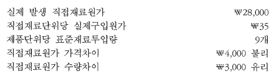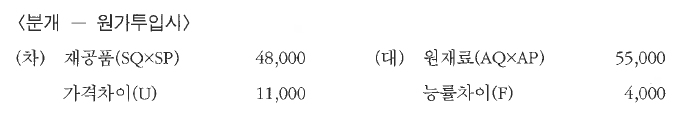 | 직접재료원가(11,000㎡ X ₩5) | ₩ 55,000 |