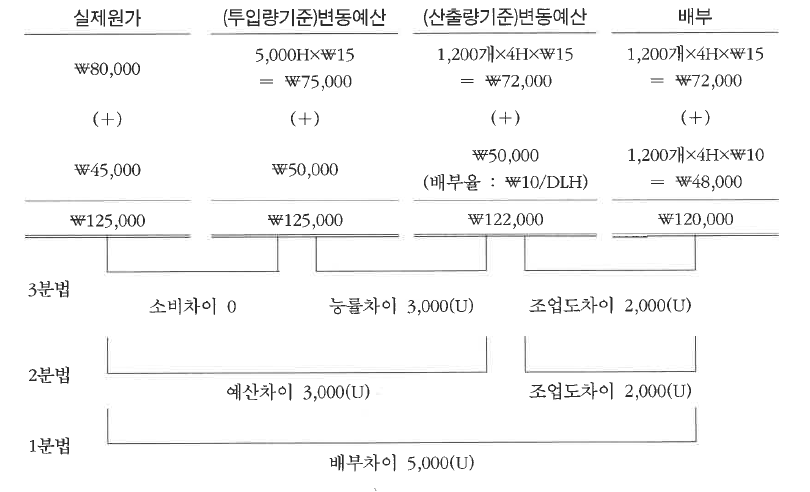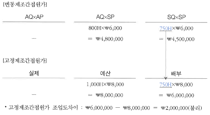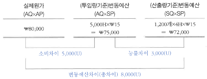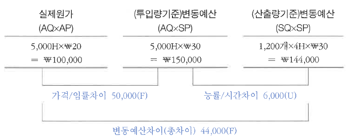 (2) 능률차이(efficiency variance) : 변동제조간접원가 능률차이는 변동제조간접원가 배부기준인 직접노무시간의 차이로 인해 발생한다.