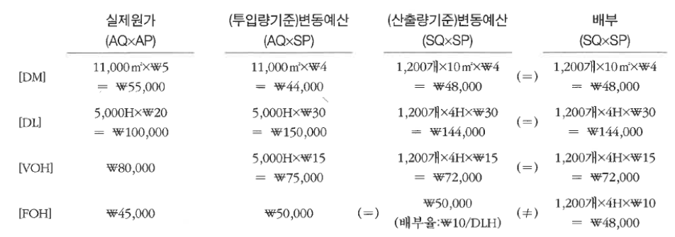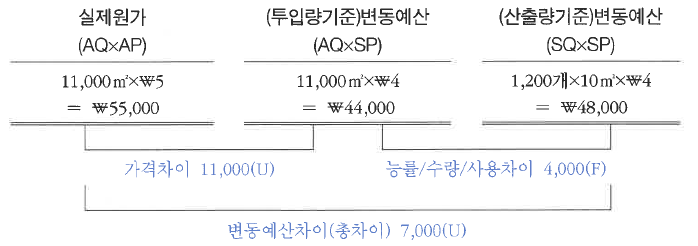 투입량기준 변동예산 : 실제 투입량에 표준가격을 곱하여 구한 예산
