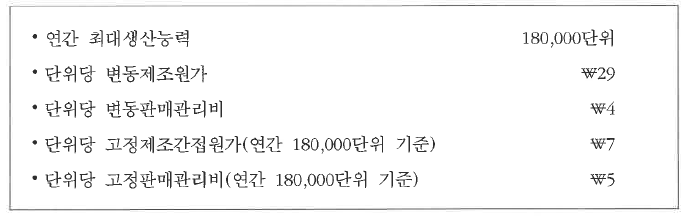 | 중간제품의 단위당 외부구입원가 | - | ₩2,000 |