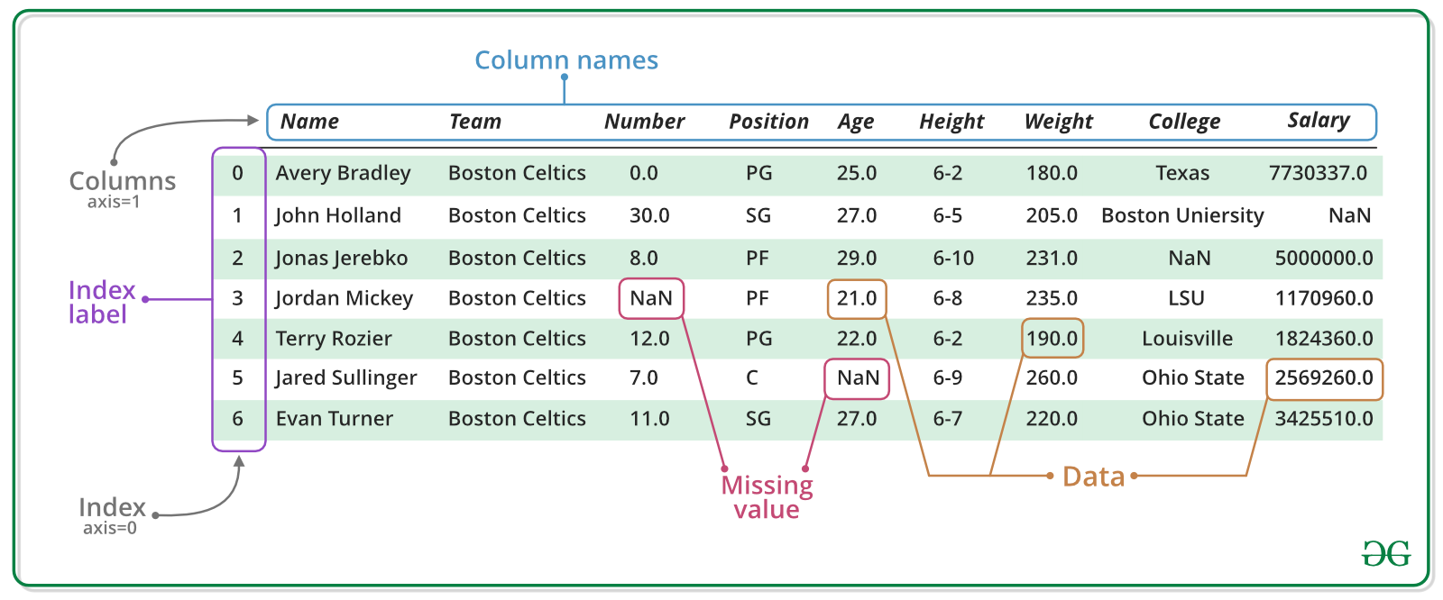 - 하나의 column을 기준으로 모든 원소의 data type이 동일합니다. (모두 numpy array가 가지는 data type과 동일)