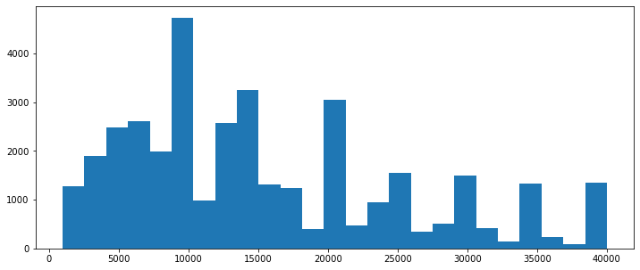 plt.bar(df["sub_grade"].value_counts().sort_index(ascending=True).index, df["sub_grade"].value_counts().sort_index(ascending=True).values)