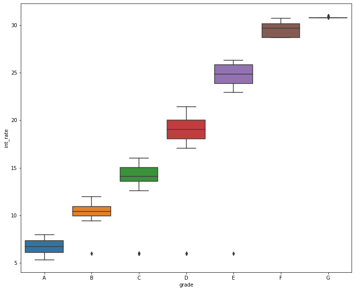 # 이자율이 신용등급에 따라 겹치지 않는다 - > 이쟈율은 신용 등급에 따라서 결정된다.