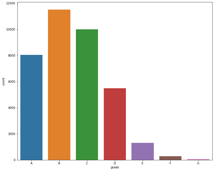sns.countplot(df["grade"],order=["A","B","C","D","E","F","G"])