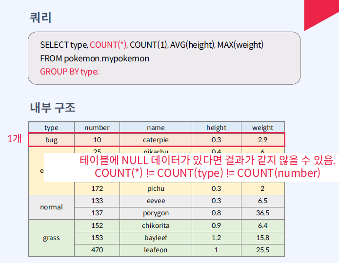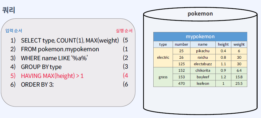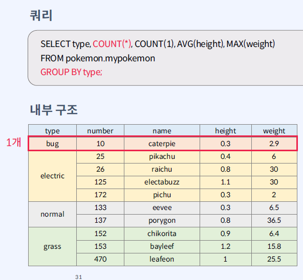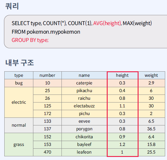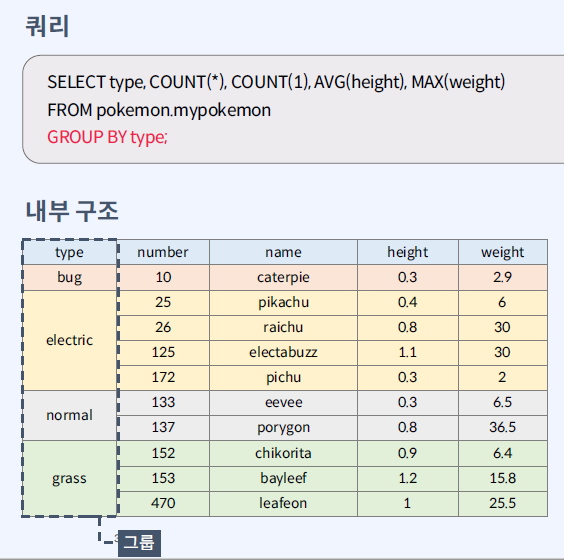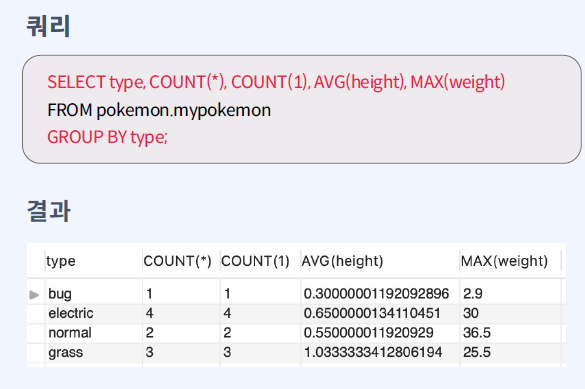 - 집계할 컬럼 이름은 그룹의 기준이되는 컬럼이름과 같아도 되고, 같지 않아도 된다.