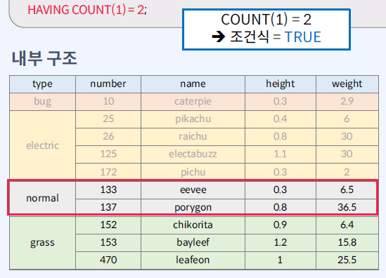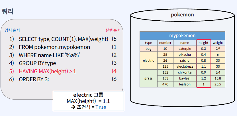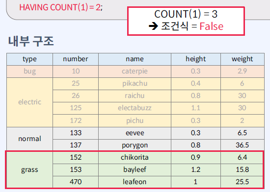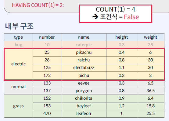 - 조건식이 True(참)이 되는 그룹만 선택.