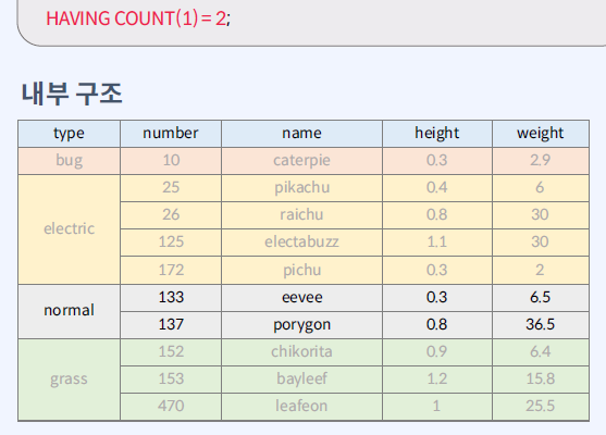 - 집계할 컬럼 이름은 그룹의 기준이 되는 컬럼이름과 같아도 되고, 같지 않아도 된다.