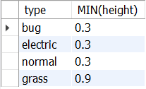 포켓몬 타입별 키의 최솟값을 가져와주세요.