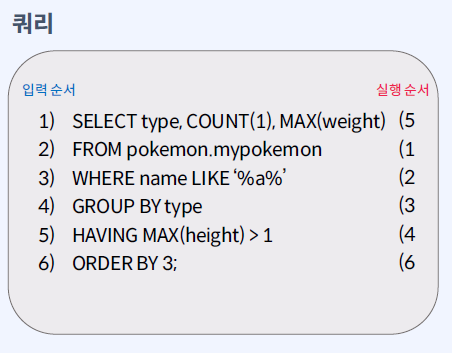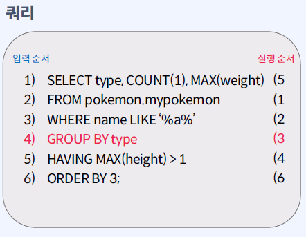 - GROUP BY [컬럼이름] 형식으로 사용.