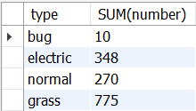 포켓몬의 타입별 번호(number)의 합을 가져와주세요.