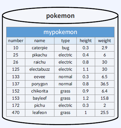 INSERT INTO mypokemon (number, name, type, height, weight)
