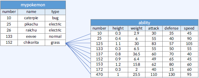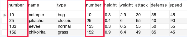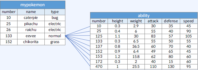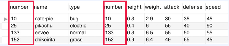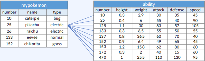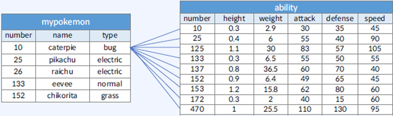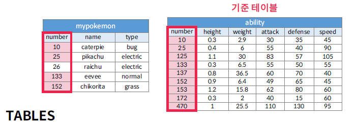 포켓몬 테이블과 능력치 테이블을 합쳐서 포켓몬 번호와 이름을 한번에 가져와 주세요.
