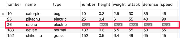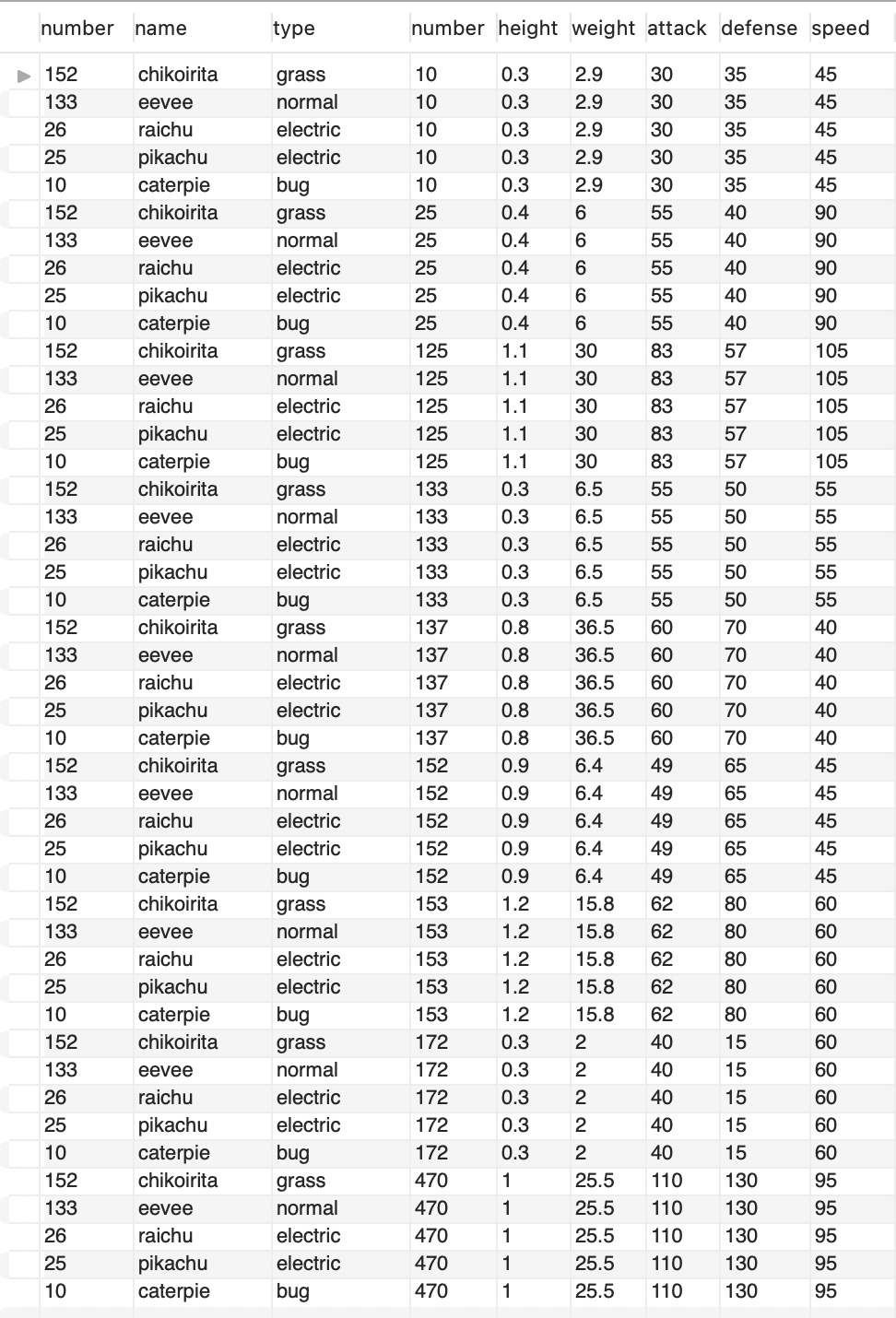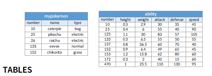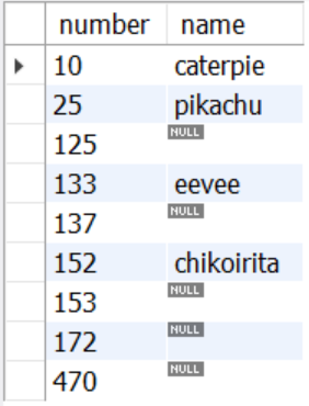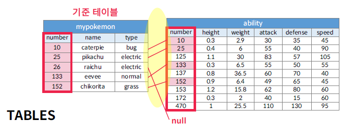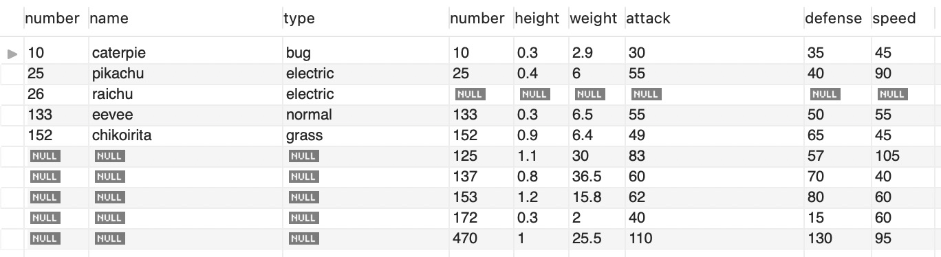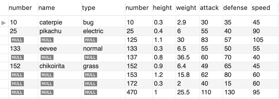 이 때, 포켓몬 테이블에 있는 모든 포켓몬의 데이터를 가져와 주세요. 만약, 포켓몬의 능력치 데이터를 구할 수 없다면, NULL을 가져와도 좋습니다.