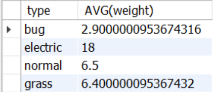 내포켓몬의 타입별 몸무게의 평균을 가져와주세요.