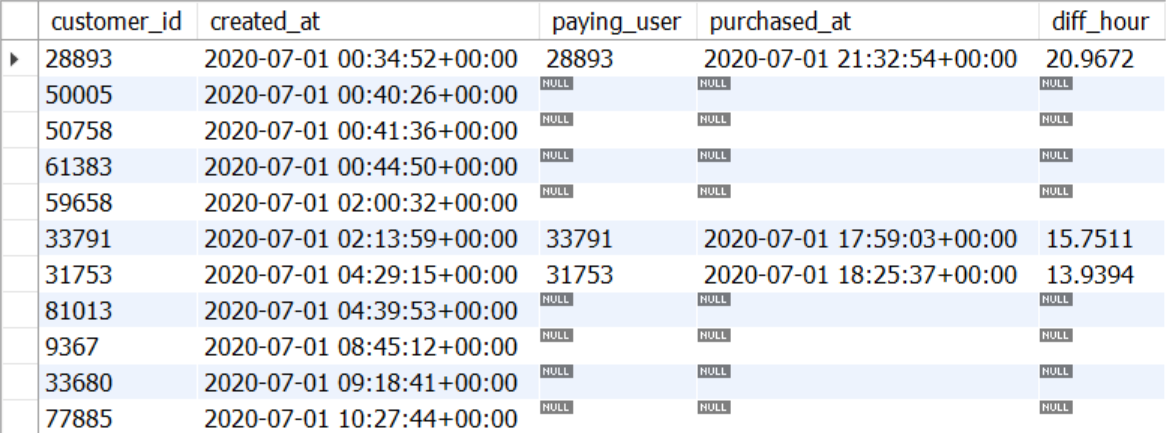 , TIME_TO_SEC(TIMEDIFF(B.purchased_at,A.created_at)) / 3600 AS diff_hour