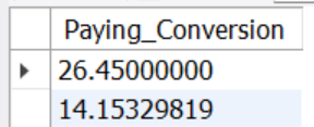 SELECT ROUND(COUNT(paying_user) / COUNT(customer_id) * 100 , 2) AS Paying_Conversion